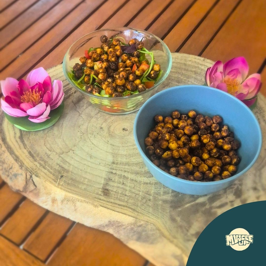 שמים סטופר לבין 30-40 דק עד שגרגרי החומוס מגיעים לצבע שחום, אפשר לטעום אחד במהלך טווח הזמן על מנת לראות שהגרגירים הגיעו למרקם קריספי מספיק.