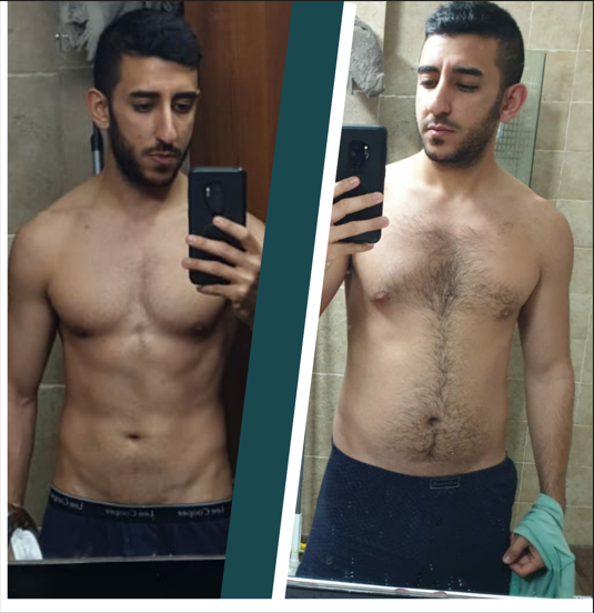 שמעון הגיע אלי בפגישתו הראשונה באחוז שומן ממוצע לגברים 21.5%. כששאלתי אותו בפגישה הראשונה מה המטרה שבשבילה בא לתהליך אמר לי שהוא